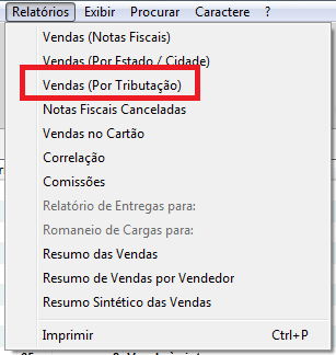 Para gerar o relatório, acesse o módulo de vendas clique no botão Relatórios - Vendas (Por Tributação);