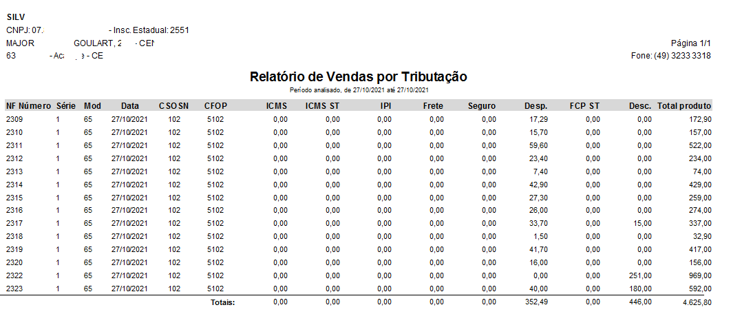 No ClippPRO é possível gerar um relatório detalhado por tributos, esse relatório trará a informação de CSOSN, CFOP, ICMS, ICMS ST, IPI, Frete, seguro, despesas, desconto e total do produto, será possível escolher os modelos de documentos considerados no relatório.