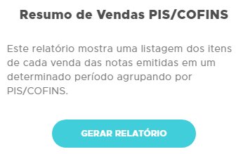 Em seguida, localize o relatório de Resumo de Vendas PIS/COFINS e clique em Gerar Relatório;