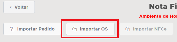 Para importar para NFC-e, após abrir uma nova, clique no botão Importar OS, aqui serão importados os Produtos lançados na ordem;