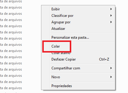 Clique com o botão direito na pasta e clique em Colar;