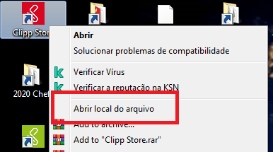 Agora, localize o ícone do clipp em sua área de trabalho, clique com o botão direito nele - abrir local do arquivo;