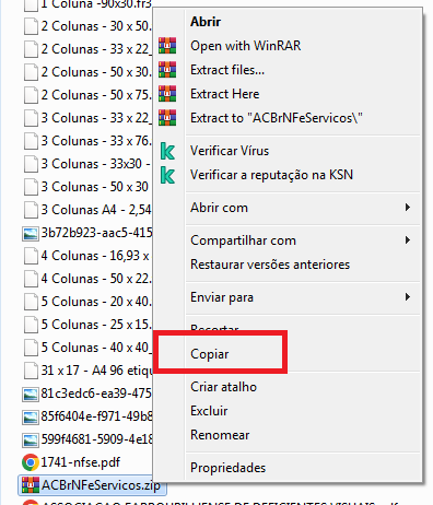 Clique com o botão direito do mouse no download efetuado e clique em Copiar;