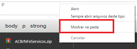 Após baixar o arquivo, clique com o botão direito no download - mostrar na pasta;