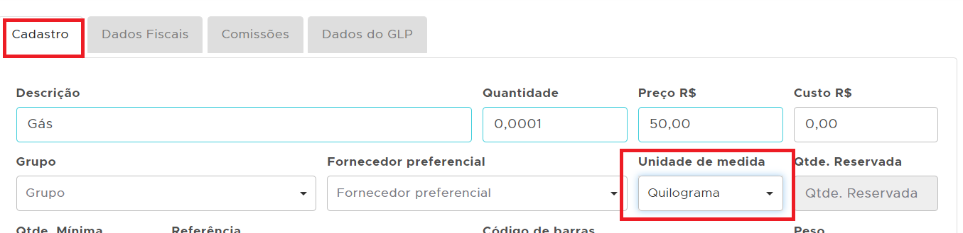 Quando o produto for GLP (Gás liquefeito de petróleo) e utilizado o código ANP 210203001, por obrigatoriedade da Sefaz é necessário informar a %GLP, %Gás natural nacional e importado no produto. Além disso como o produto é um Gás, a unidade de medida deve ser KG.