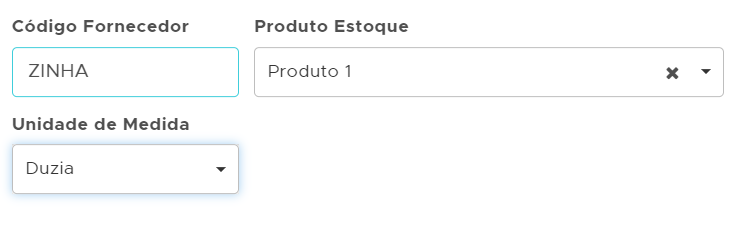 Preencha o código do fornecedor, produto estoque e unidade de medida, os dados inseridos aqui serão aplicados na nota de compra, no momento da importação do XML. Lembrando que o item deve estar cadastrado no estoque antes de qualquer procedimento;