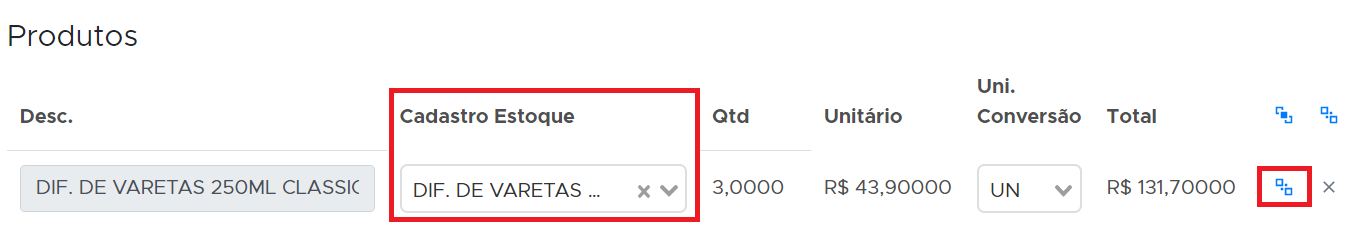 Após importar o XML (conforme procedimentos indicados aqui) indique o item do cadastro de estoque e clique no botão para parametrizar;