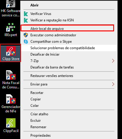 Assim que aparecer a mensagem, pode incluir o seu serial do sistema, em seguida, pressione com o botão direito no atalho do ClippStore e vá em Abrir local do arquivo.