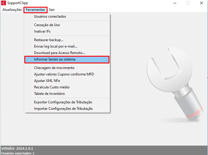 Vá em Ferramentas - Inforamar seriais ao sistema e coloque o serial no campo informado referente ao seu sistema.