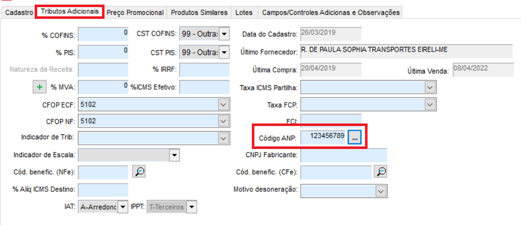 3. Localize o campo Código ANP;