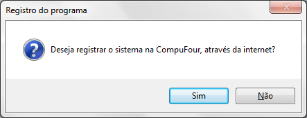 Clique em OK novamente e será apresentada uma mensagem solicitando se deseja registrar o sistema através da internet. Clique no botão Sim.