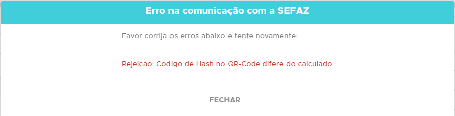 Quando for emitida uma NFC-e e o parâmetro "cHashQRCode" calculado pelo sistema, for diferente do calculado pela Sefaz.