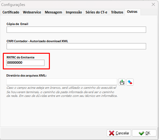 Caso você não possua o RNTRC preencha o campo com 8 zeros.