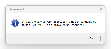 Ao emitir o CT-e em MG apresenta a seguinte mensagem: