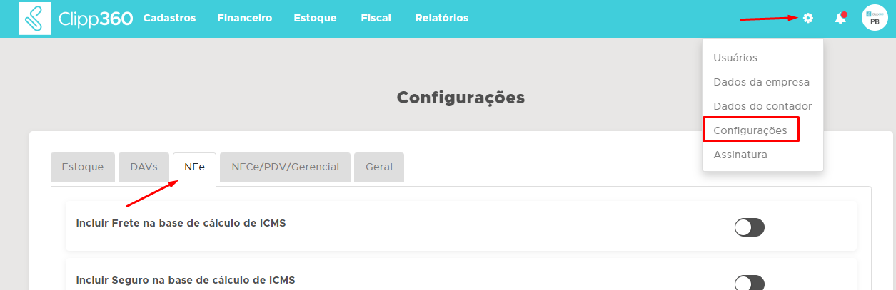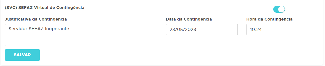 Para ativar o modo de emissão em Contingência no ClippFácil/360, basta ir até configurações - NFe - nela encontrará a opção (SVC) SEFAZ Virtual de Contingência. Ativando essa opção, abrirá três novos campos, Justificativa da Contingência, Data da Contingência e Hora da Contingência. Nesses campos você deverá preencher as respectivas informações.