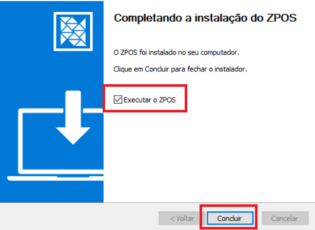 Aguarde o ZPOS ser instalado em seu computador, após concluir a instalação, mantenha a opção para executar marcada e clique em Concluir;