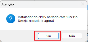Quando concluir, clicando em SIM, será aberto o instalador do ZPOS;