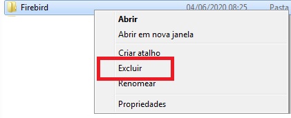 Após desinstalar, abra o Computador\Disco Local C\Arquivos de programas (ou arquivos de programas X86) e APAGUE a pasta FireBird;
