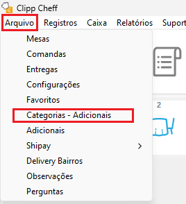 Então acesse o cadastro de categorias no caminho: Arquivo > Categorias - Adicionais