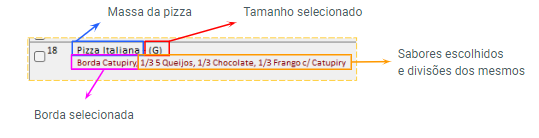 A esquerda selecione o tamanho da pizza (caso tenha vinculado valores diferentes por tamanho, ao alterar o tamanho os valores serão atualizados).