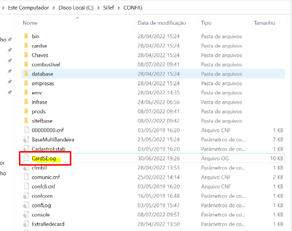 1 - Vá até Disco Loca (C):\SiTef\CONFIG e localize o arquivo CardSE.bin;