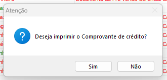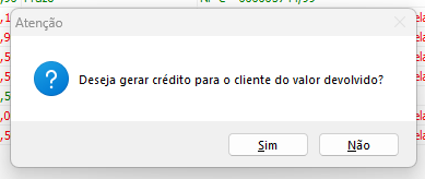 Após informar o cliente, será solicitado se deseja gerar crédito para o cliente referente a esta devolução e após se deseja imprimir o comprovante de crédito.