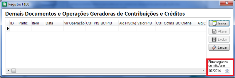 Clicando em Incluir ou Alterar será aberta a tela para que se possa preencher/alterar as informações lançadas para o registro F100.