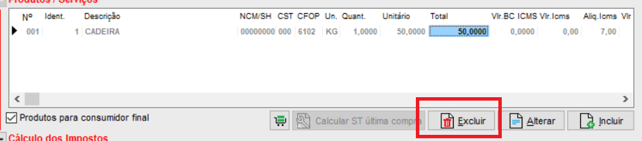 Em seguida, abra a nota e exclua o item;