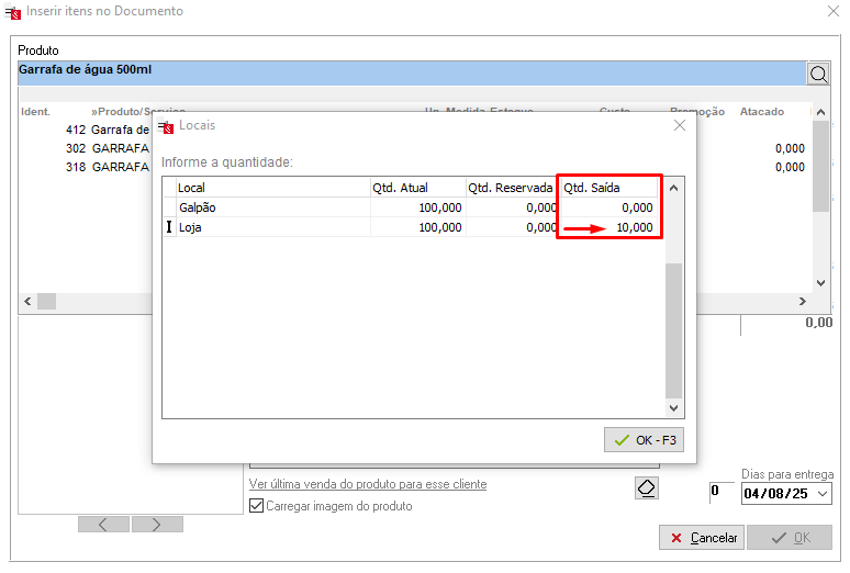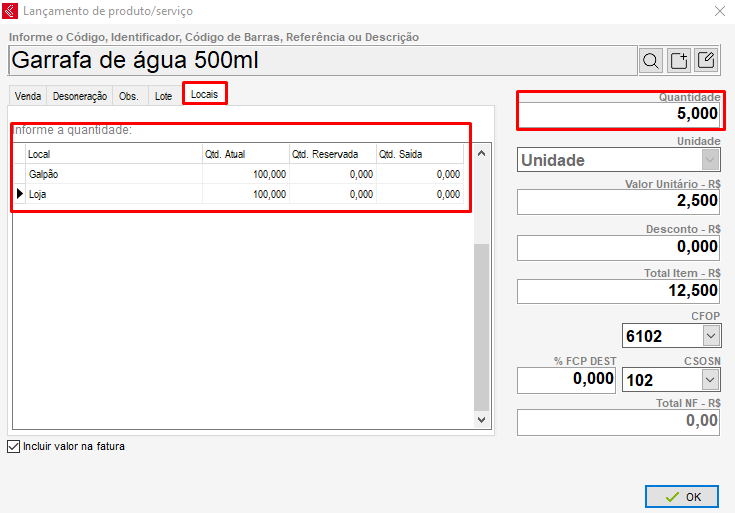 Ao finalizar e transmitir a nota, será removida a quantidade no local em questão;