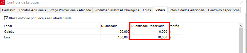 Caso defina a situação do DAV como reservado, o sistema irá reservar a quantidade no local em questão;