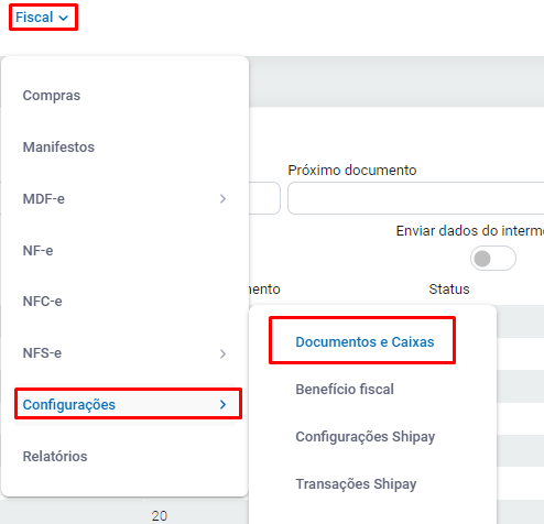 - Ir em Fiscal - Configurações - Documentos e Caixas
