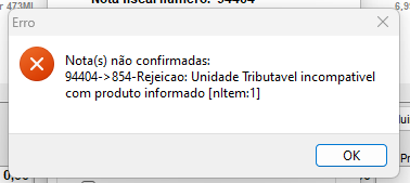 Ao emitir NFe com o item que tem o ANP de Biodisel retorna a mensagem: