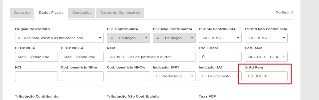 Abra o cadastro do item, acesse a aba Dados Fiscais e efetue o preenchimento do % Ad Rem de acordo com a instrução de sua contabilidade;