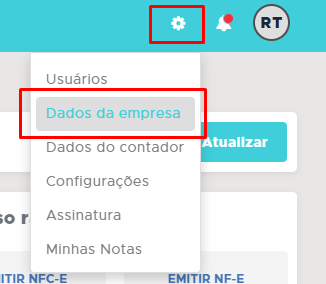 Primeiramente verifique se o Emitente está configurado como Optante do Simples. Para isso, acesse o ClippFácil/360 e acesse a opção de Configurações localizado no canto superior direito, e clique em Dados da empresa.