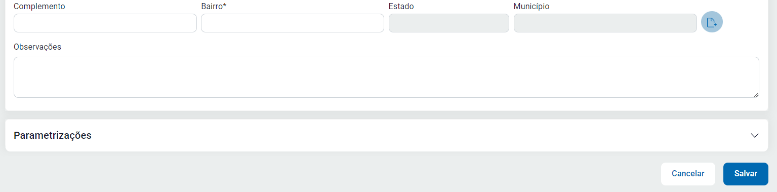 • Endereços: Preencha as informações do endereço e caso queira adcionar outro endereço clique no botão .