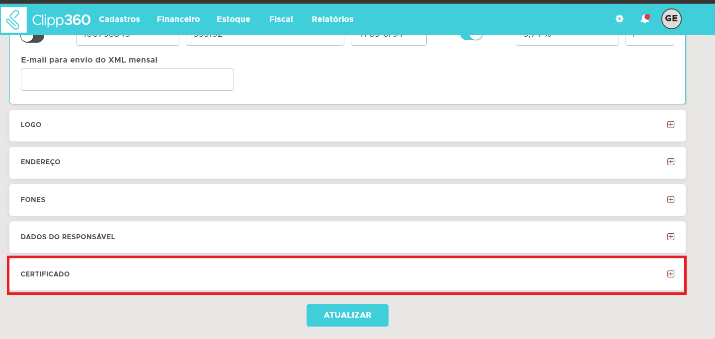 Clique no campo Certificado;