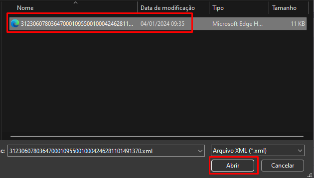 Quando abrir a tela para preenchimento da nota, clique no botão Importar XML e depois em Importar Arquivo