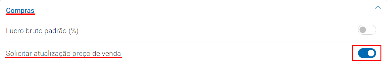 Na Aba compras marque a opção "Solicitar atualização preço de venda"