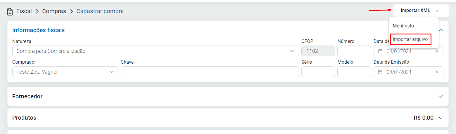No ZetaWeb é possível importar XML da nota de compra, neste artigo iremos descrever o procedimento.