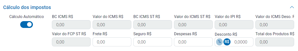 Na aba de cálculo dos impostos será exibido a Base do ICms, valor do ICMS e demais impostos, bem como, o valor total dos produtos, poderá incluir Frete, seguro, despesas e desconto.