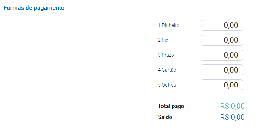 Nesta aba é possível escolher a forma de pagamento da nota, que são editáveis, caso não tenha cadastrada a forma de pagamento que deseja, clique aqui.