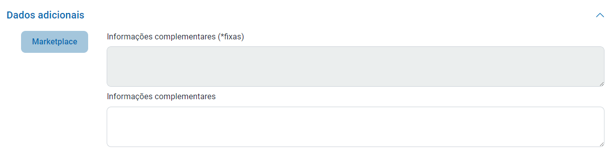 Na aba em questão é possível informar as informações complementares e visualizar a informações fixas, também é possível informar os dados do intermediador/marketplace (caso houver).