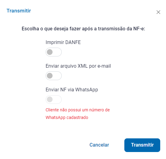 OBS: A opção Enviar arquivo XML por e-mail só estará disponível caso o cliente selecionado tenha um e-mail cadastrado.