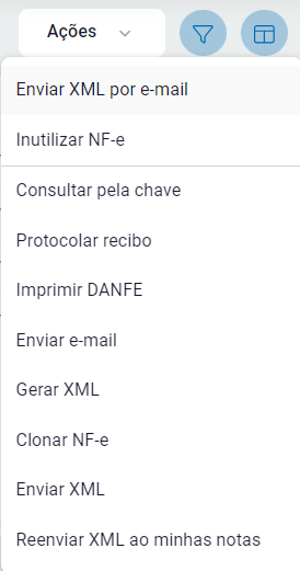 Marcando a NF-e no checkbox, nas ações é possível escolher: