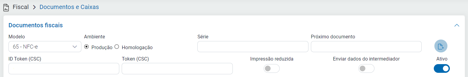 Após embarcar seu certificado digital no sistema, é possível configurar a emissão da NFC-e, para isso, clique em Fiscal - Configurações - Documentos e Caixas.