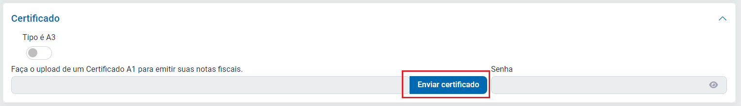 Caso seu certificado seja o modelo A1, clique no botão Enviar Certificado.