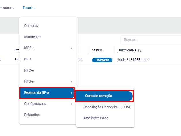 Se precisar visualizar ou imprimir novamente a Carta de Correção que já foi emitida, basta ir em Fiscal > Eventos da NF-e > Carta de Correção