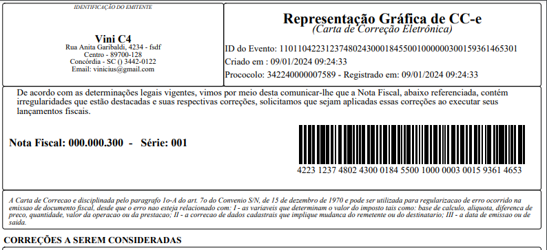 Emitindo a Carta de Correção