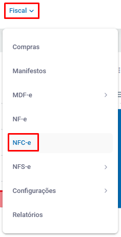 Após configurar corretamente o sistema, será possível emitir a NFC-e, para isso, clique em Fiscal - NFC-e.