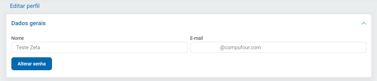 É possível alterar o Nome do perfil, e-mail principal e alterar a senha (necessário possuir a senha atual da conta para este procedimento).
